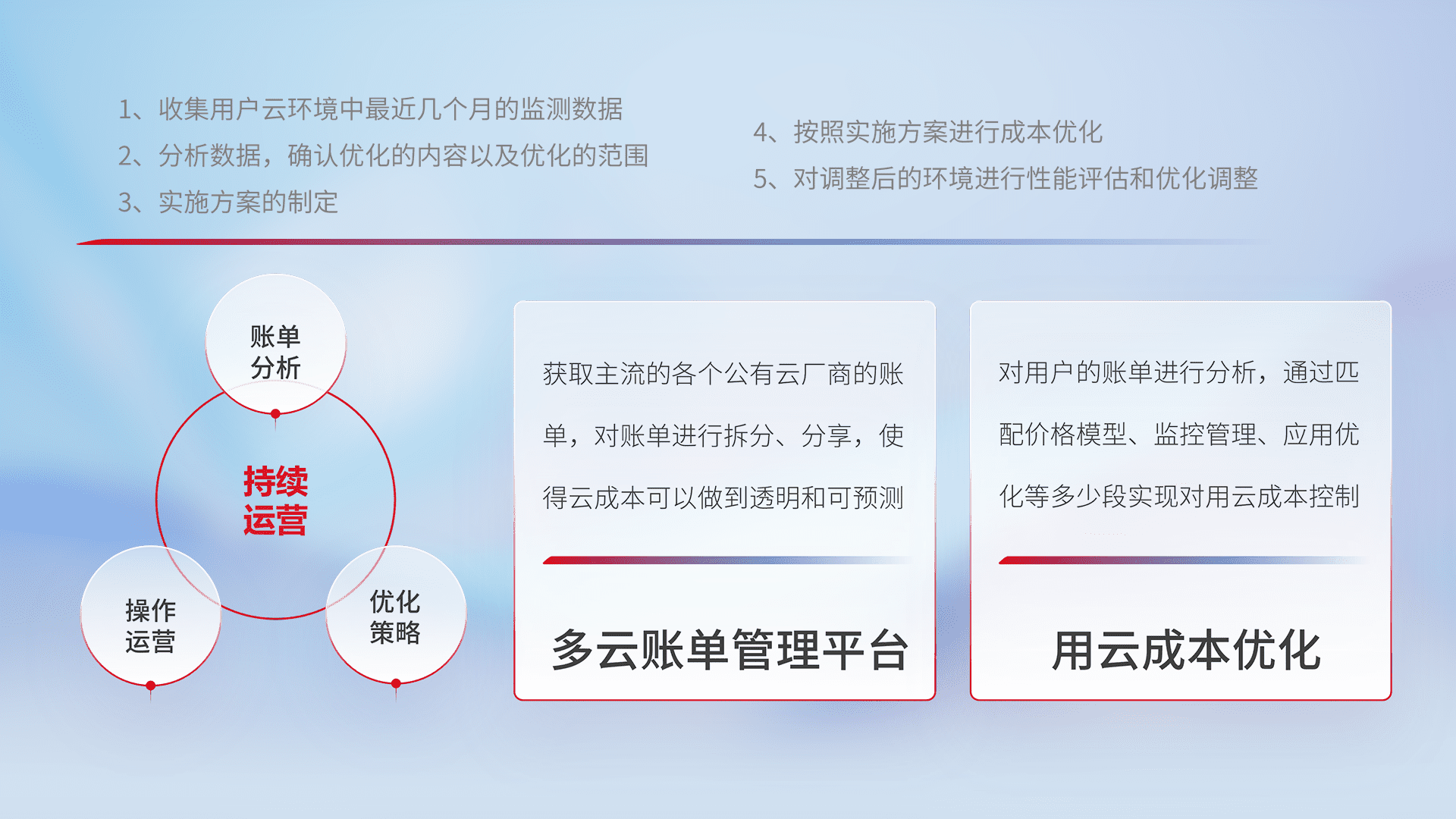 运用智能化工具分析云资源,,提供日常费用可视化工具,,,自动账单拆分,,,,成本优化云上费用,,,降本增效。。。
