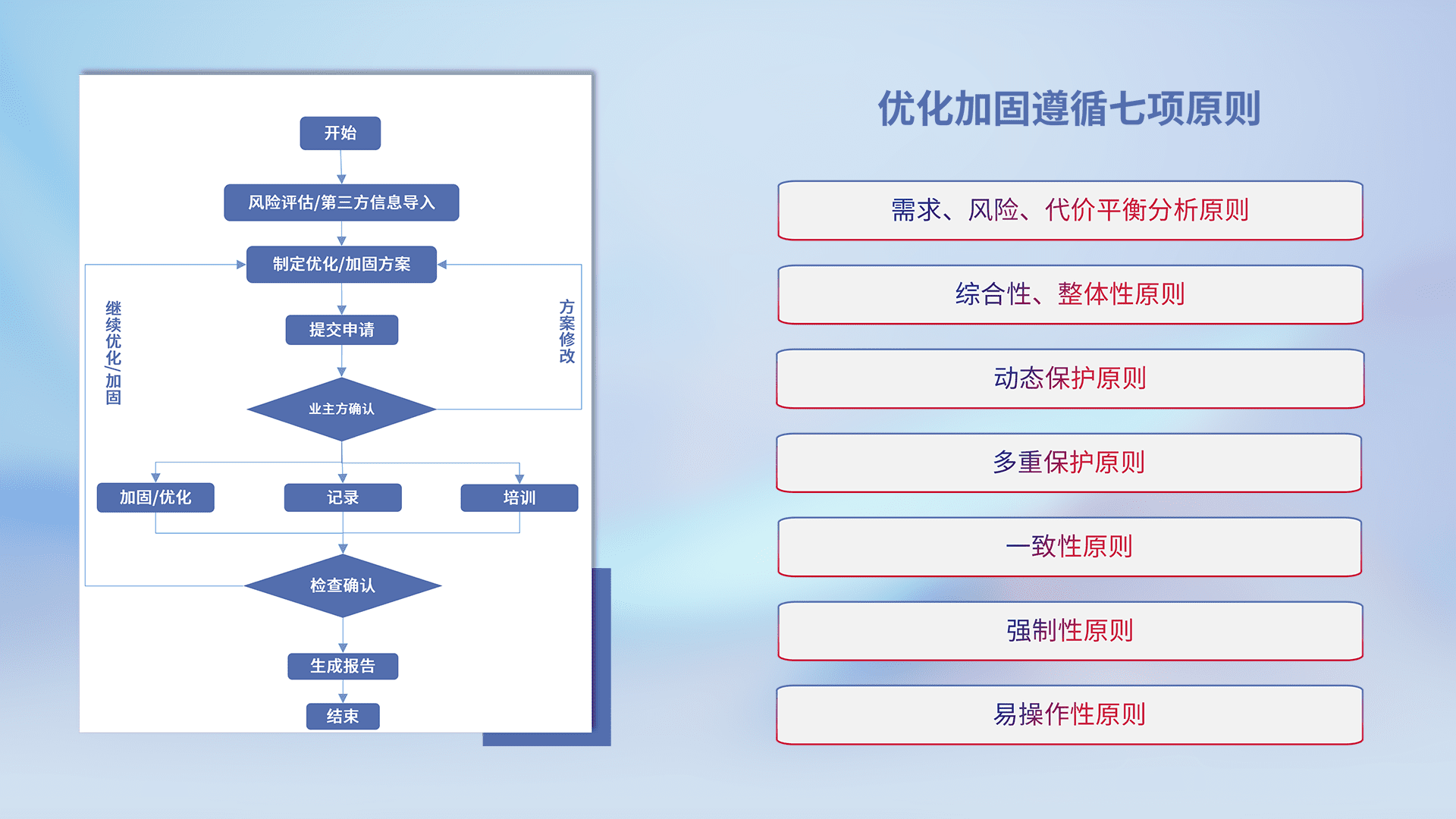 最大程度利用现有资产,,对评估发现的问题进行封堵与整改,,,,防止漏洞被利用,,提升整体网络安全性,,,为客户带来高标准的优化加固服务。。